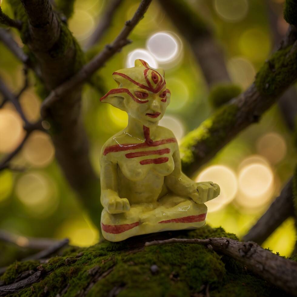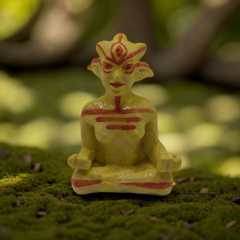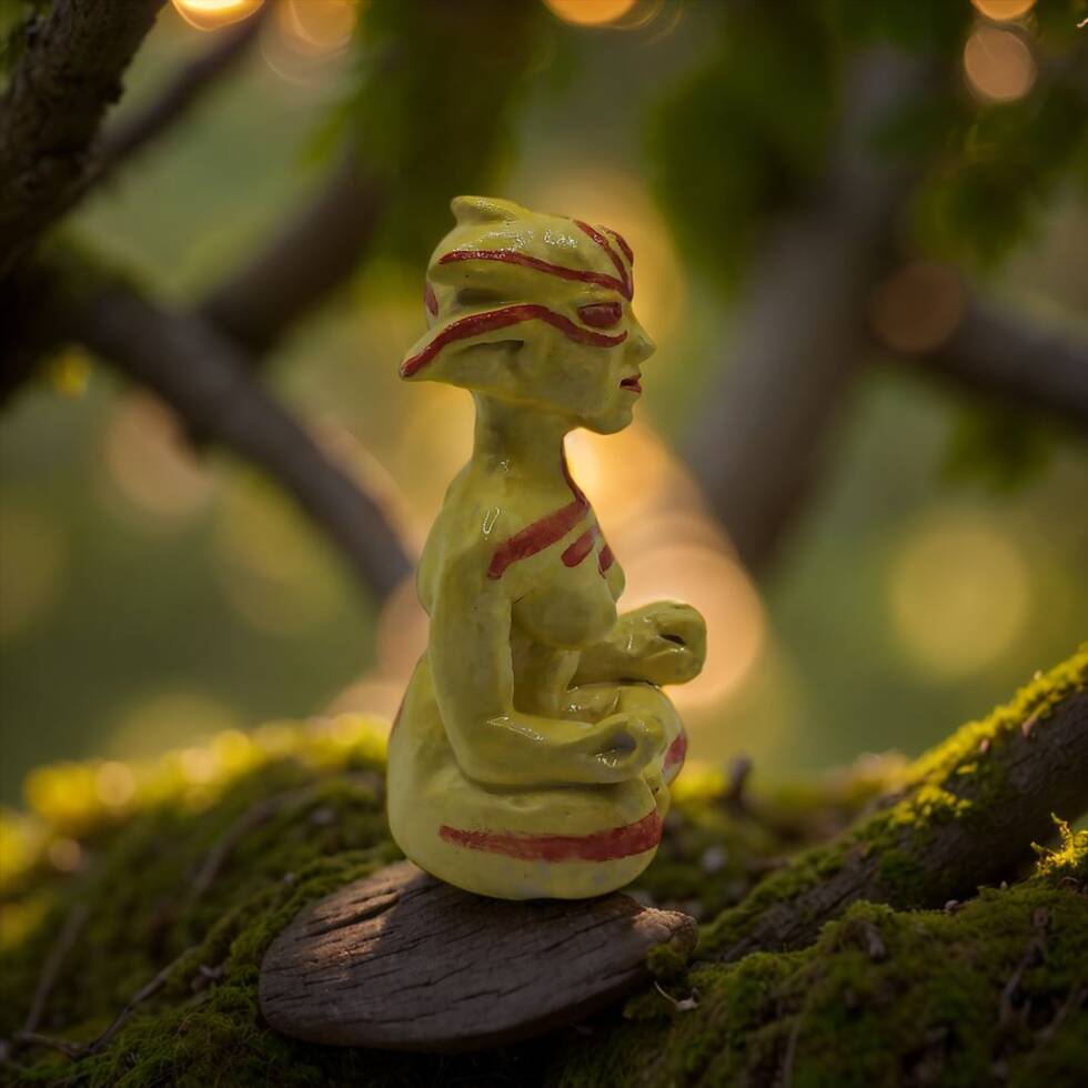 Each figurine is a fragment of a dream, where the human and the other intertwine without boundaries.
