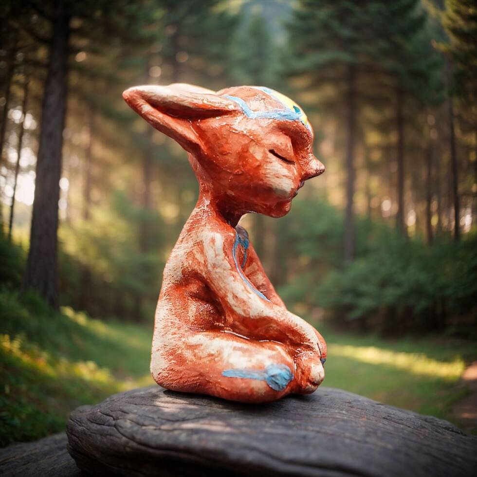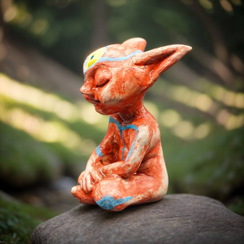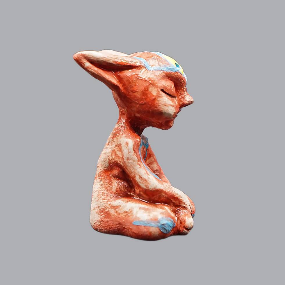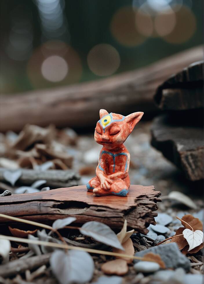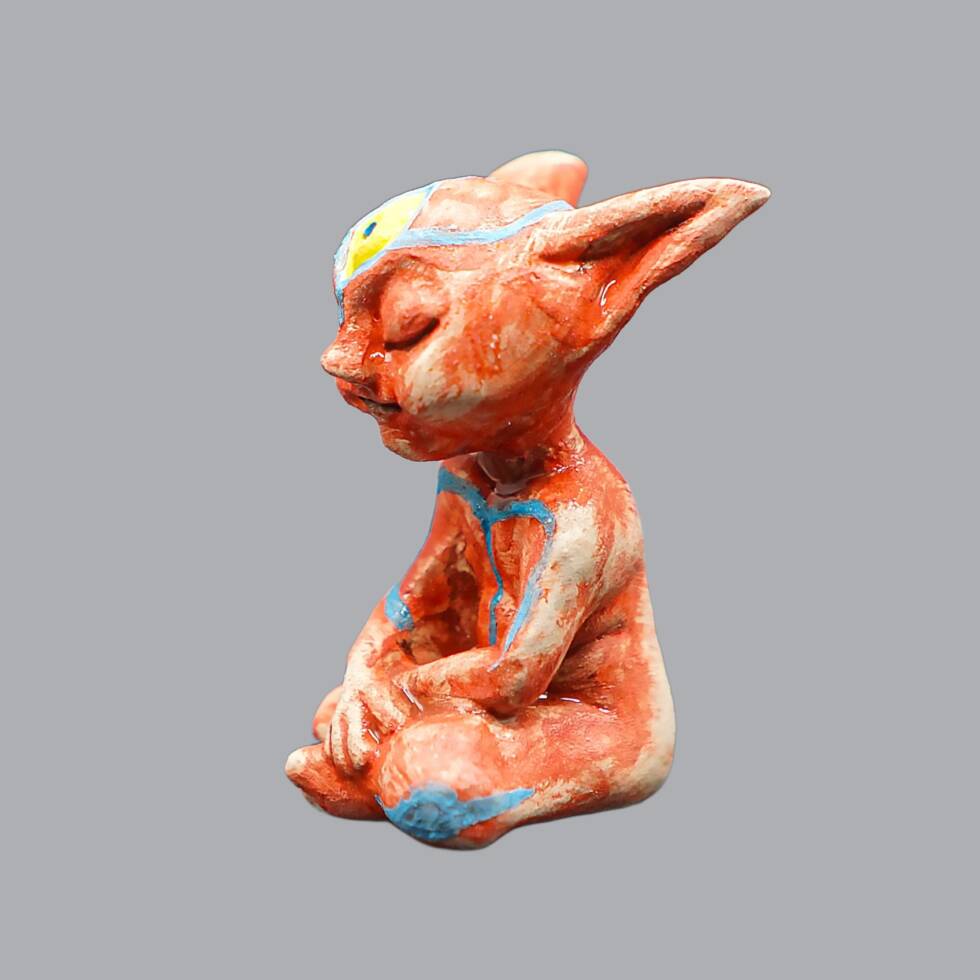 Each figurine is a fragment of a dream, where the human and the other intertwine without boundaries.
