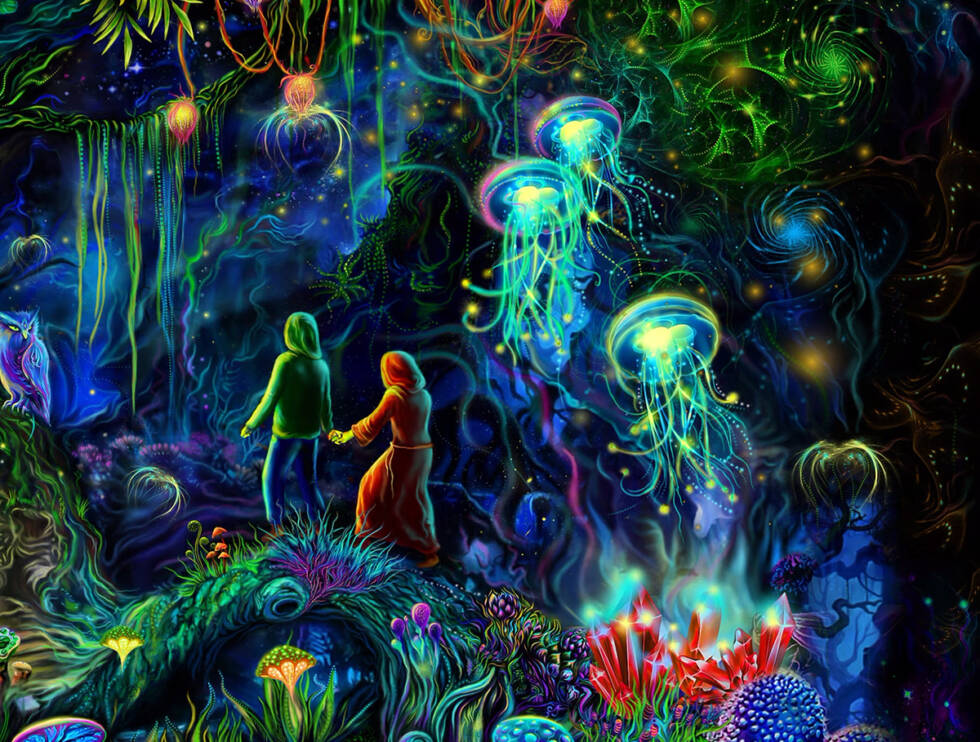 Digital-репродукция на флюоресцентном полотне «Wizard forest»