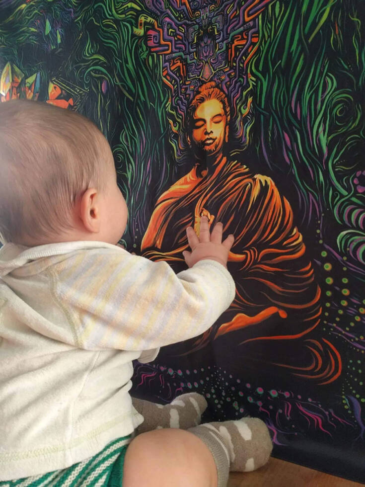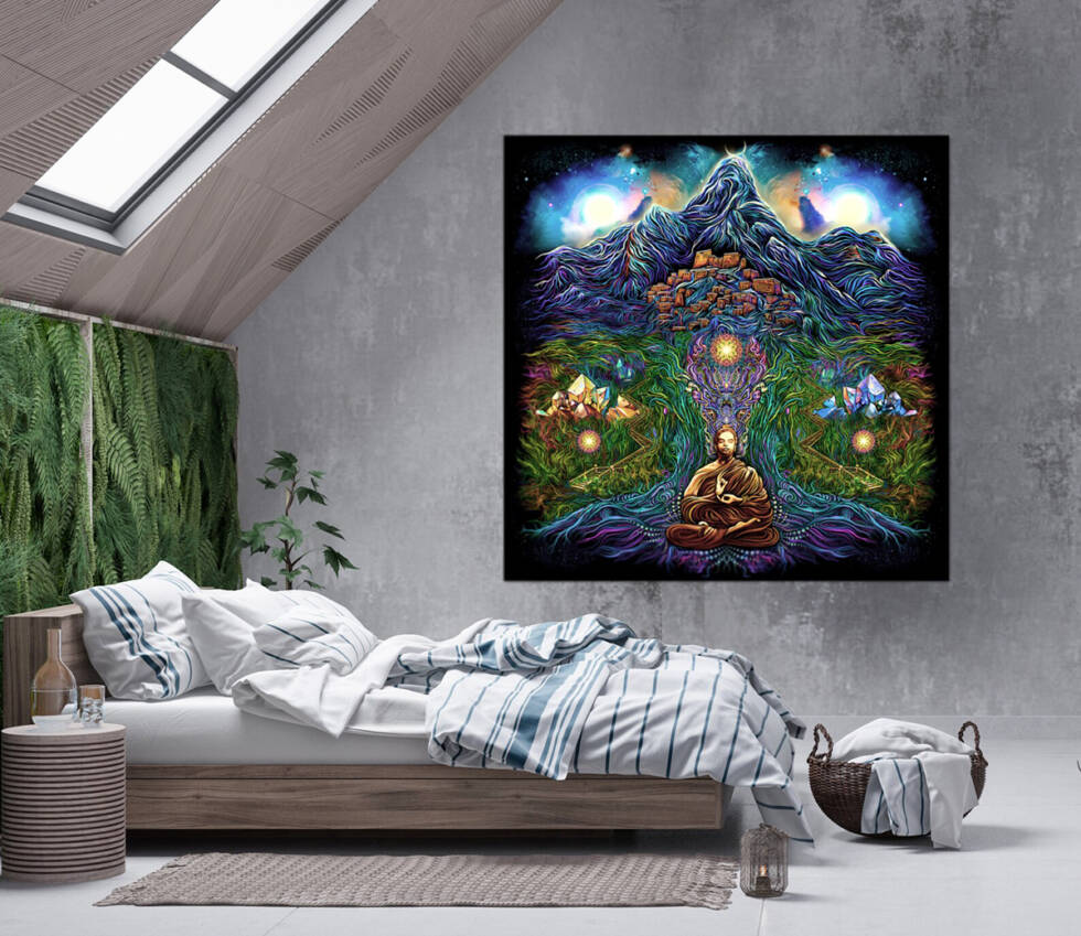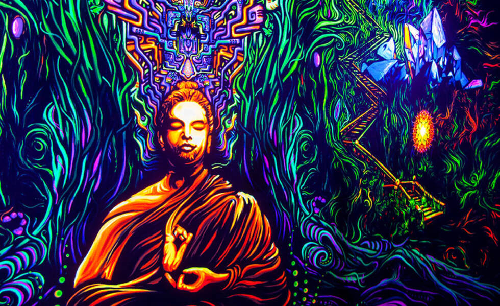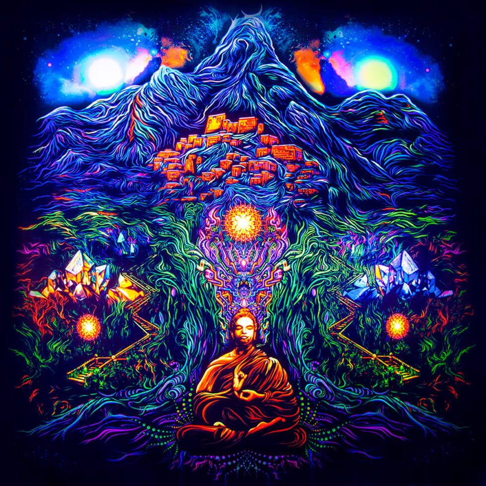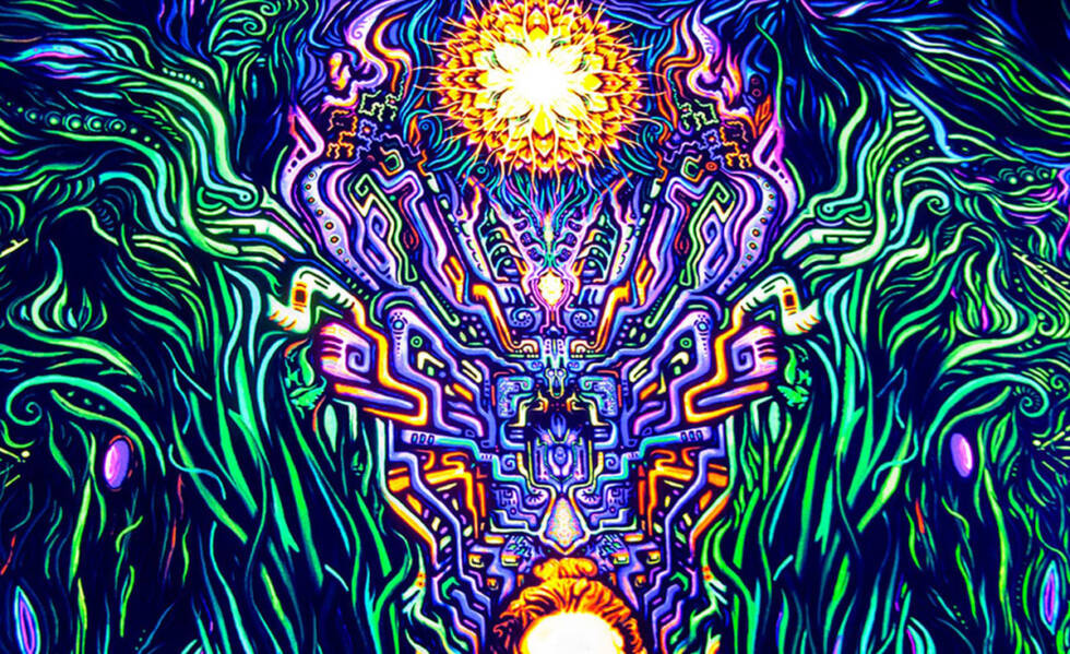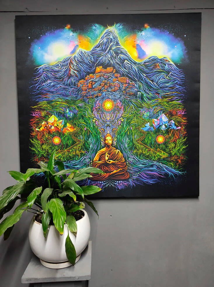 При ультрафиолетовом освещении картина раскрывает глубину цвета, световые акценты и многослойную структуру изображения.