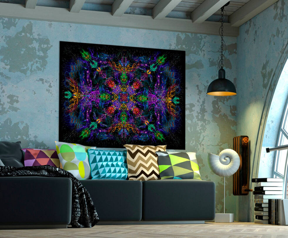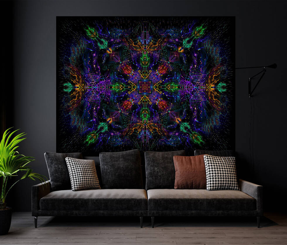 «Космический ветер» — полотно размером 95×125 см, созданное на плотной качественной ткани. Изображение выполнено в цифровой технике с художественными живописными акцентами, что придаёт работе глубину и динамику. Полотно оснащено прочными люверсами, которые позволяют легко закрепить его на стене, сохраняя идеальную геометрию и натяжение. Современное декоративное решение, которое наполняет пространство ощущением движения и космического дыхания.