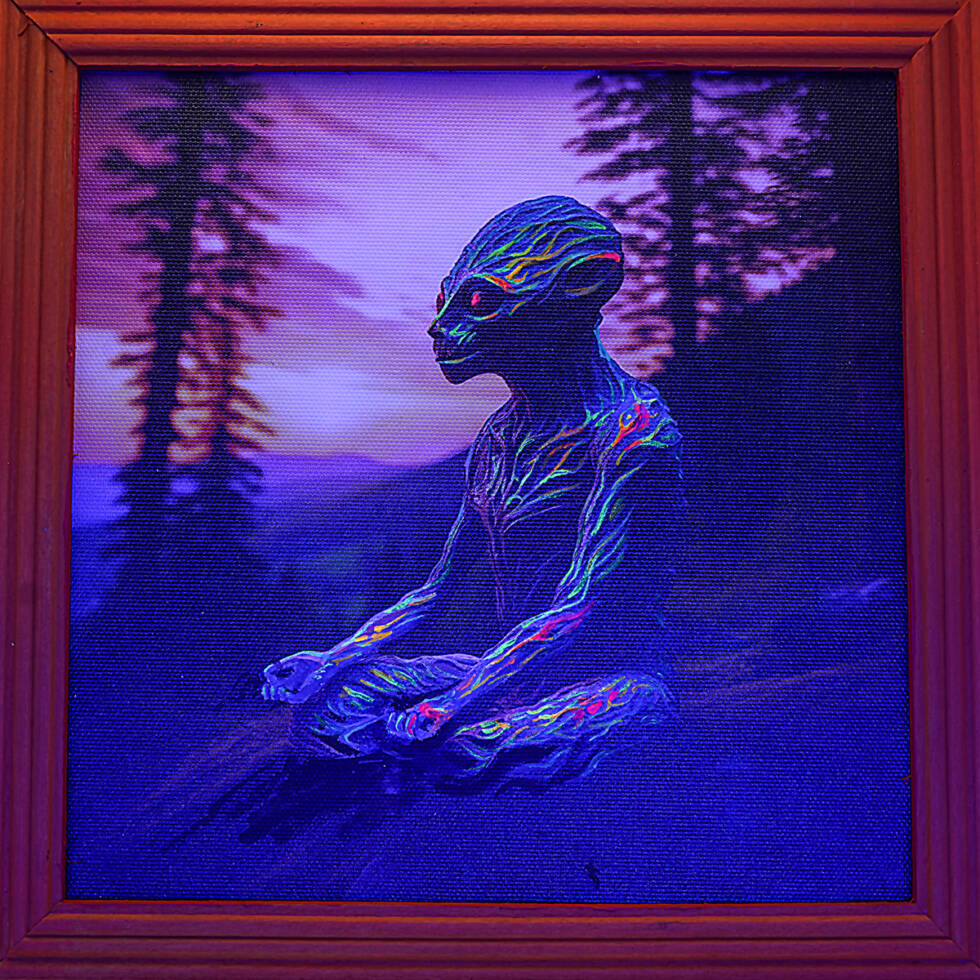 Виконани на полотні флуоресцентними акриловими фарбами.